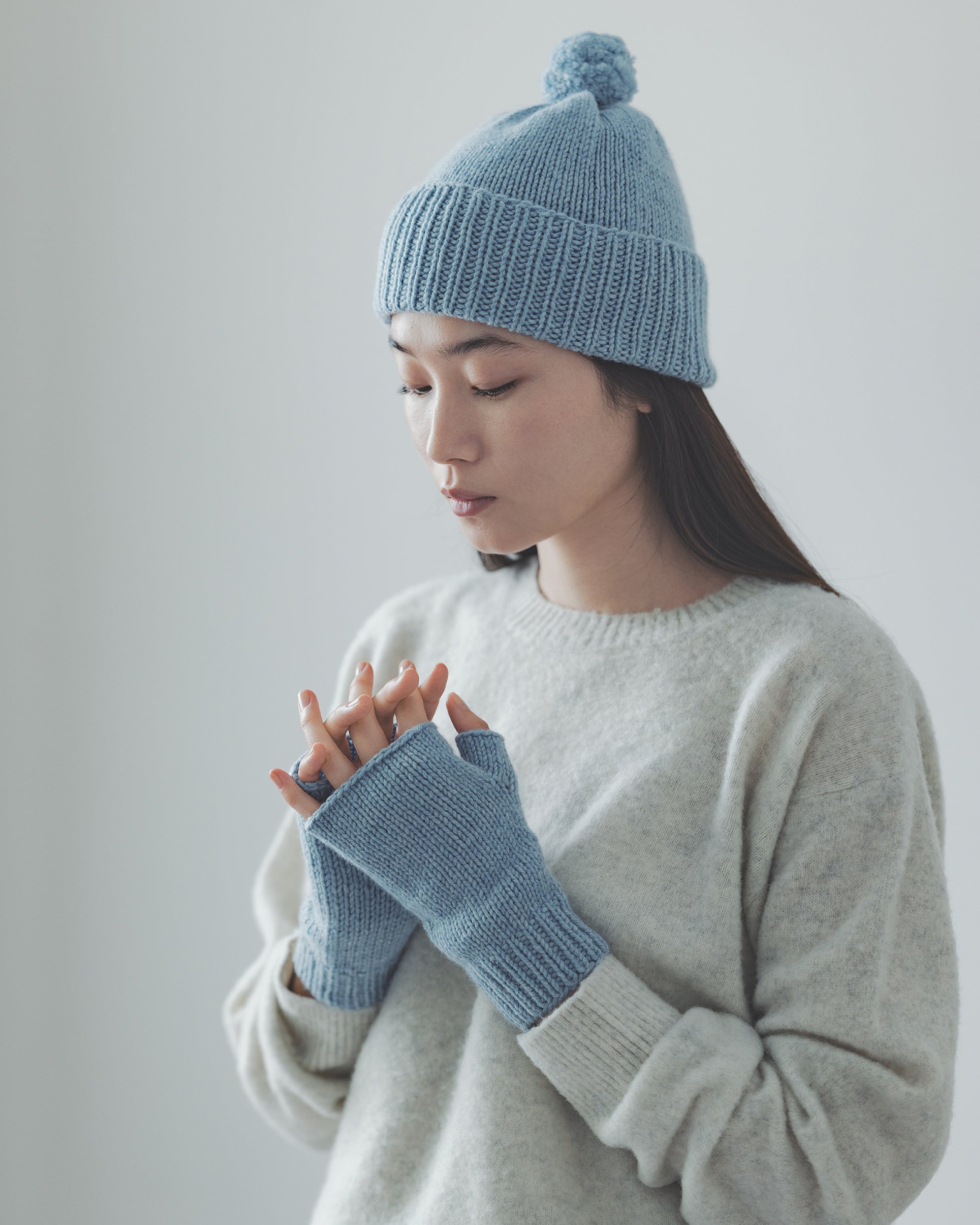 メリヤス編みは毛糸の風合いを特に感じやすい編み組織です。編んでいる最中も、完成品を身につける際もカシミヤの軽やかで柔らかい質感と心地よい温もりを嗜んでいただけます。