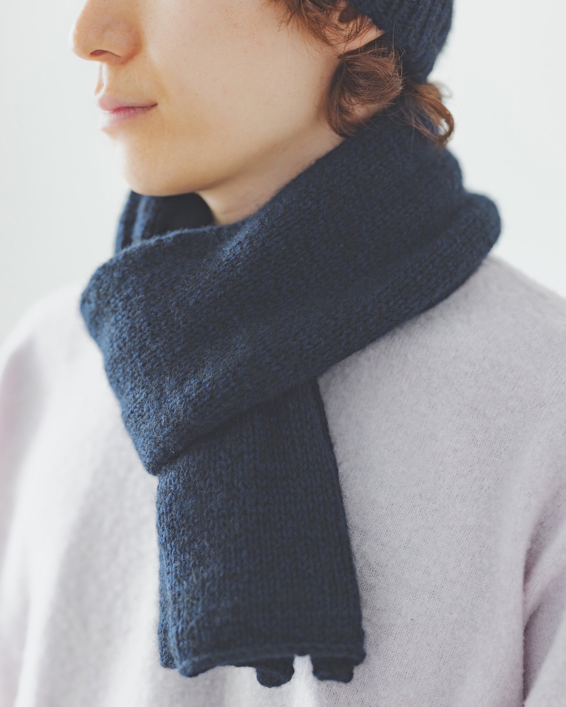 メリヤス編みは毛糸の風合いを特に感じやすい編み組織です。編んでいる最中も、完成品を身につける際もカシミヤの軽やかで柔らかい質感と心地よい温もりを嗜んでいただけます。