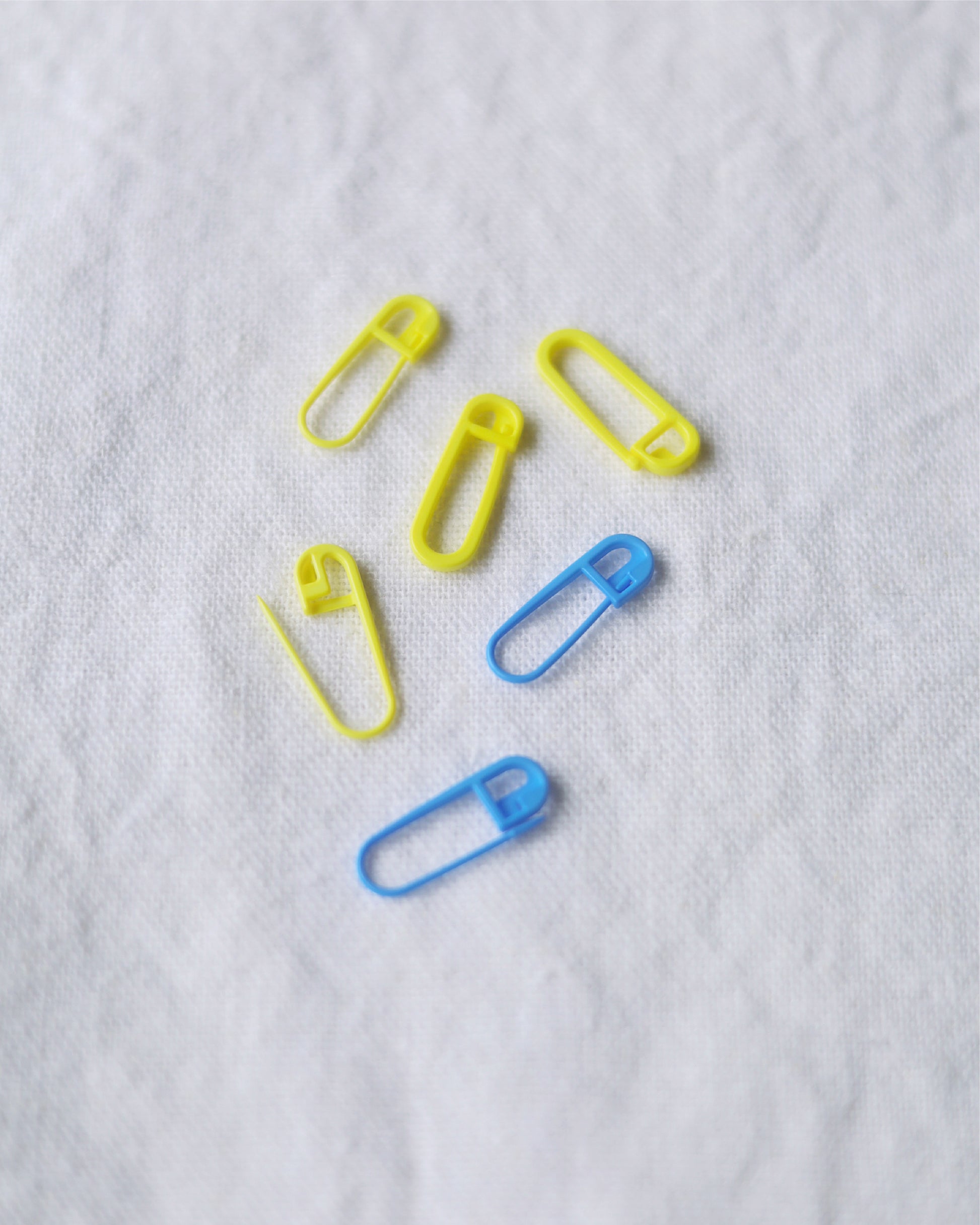 段数を把握するためにつけたり、減らし目や増し目をする箇所や接ぎ合わせの位置につけて、スムーズに編み進めるための便利なアイテムです。